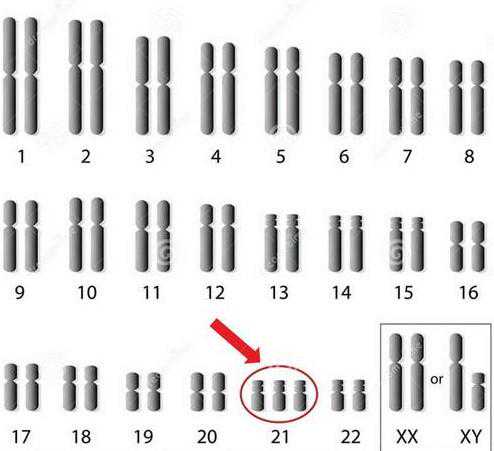 那么什么是唐氏儿呢?我们知道,正常人体细胞一共有23对染色体,正常精子和卵子结合以后,1到23号染色体,每一号染色体都是一对即两个染色体。而唐氏儿的第21号染色体存在3个染色体,比正常人多了一个染色体。原因是卵子或者精子在做减数分裂的时候,第21号染色体没有分开,所以成为受精卵以后第21号染色体就是3个。见上图。唐氏儿一般智力低下,缺乏生活自理能力。人群出生发病率:1/700~1/900。