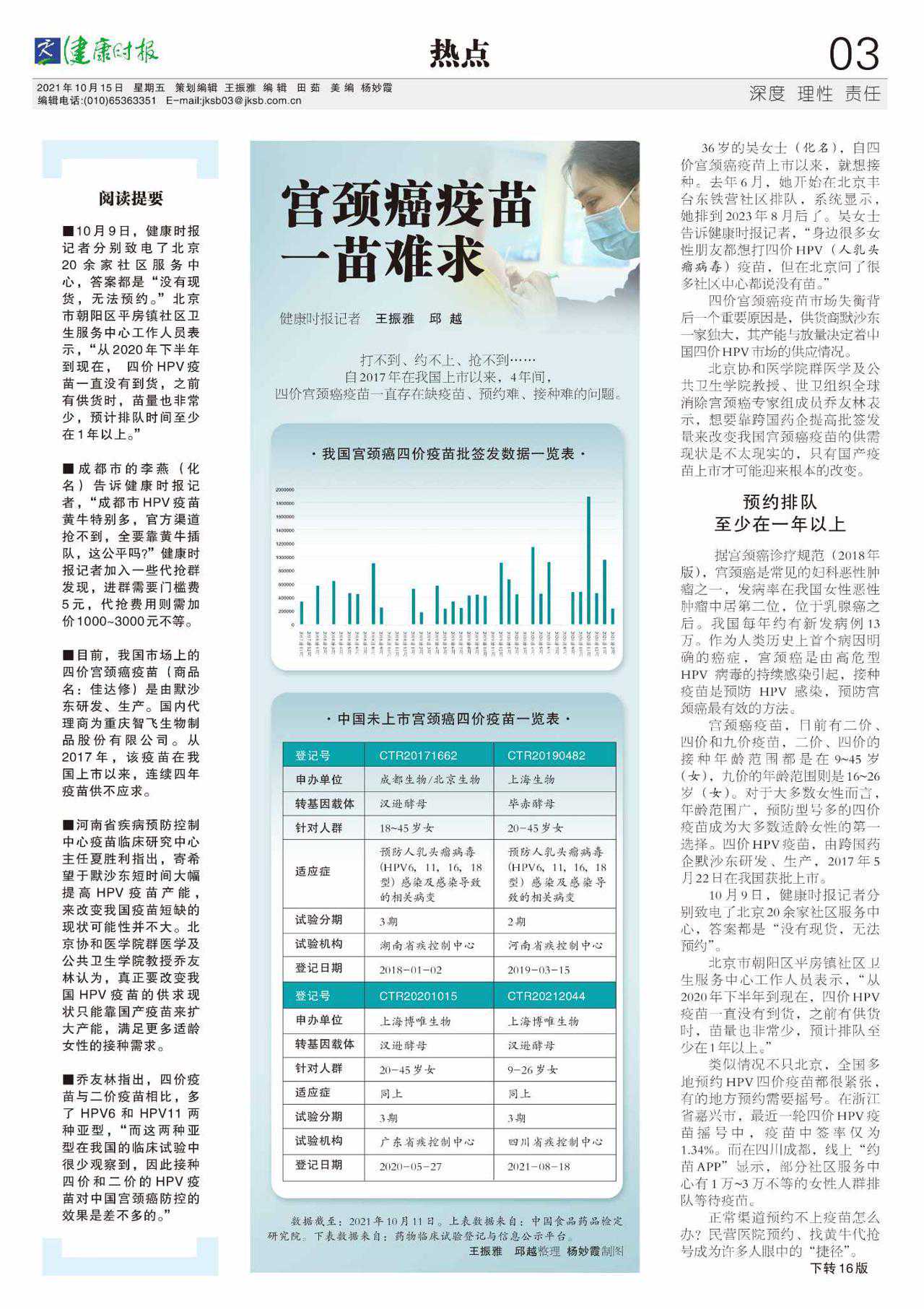 北京市朝阳区平房镇社区卫生服务中心工作人员表示,“从2020年下半年到现在,四价HPV疫苗一直没有到货,之前有供货时,苗量也非常少,预计排队至少在1年以上。”