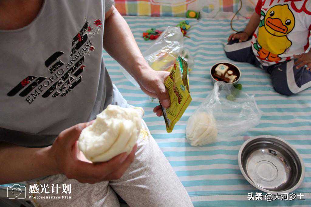 为了省钱,杜君夫妻俩吃饭常常是馒头就咸菜,有时为了照顾孩子,更是一天也顾不上吃一顿饭。孩子生病这几个月时间里,夫妻俩身心俱疲,但他们说,既然把这个小生命带到了这个世界来,那就要负责到底,跟小政勋手术化疗遭受的病痛相比,他们自己苦些累些根本没什么。图为夫妻俩为了省钱,每天只吃馒头咸菜、喝白开水。