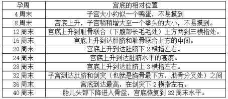 除了通过宫高的厘米数判断,宫底的位置也是有一定的规律的,孕妇还可以通过判断宫底的相对位置是否和孕周相符来估测胎儿的发育状况。
