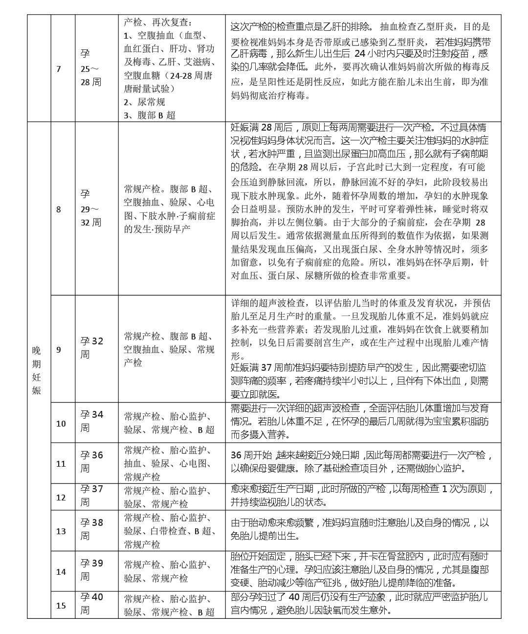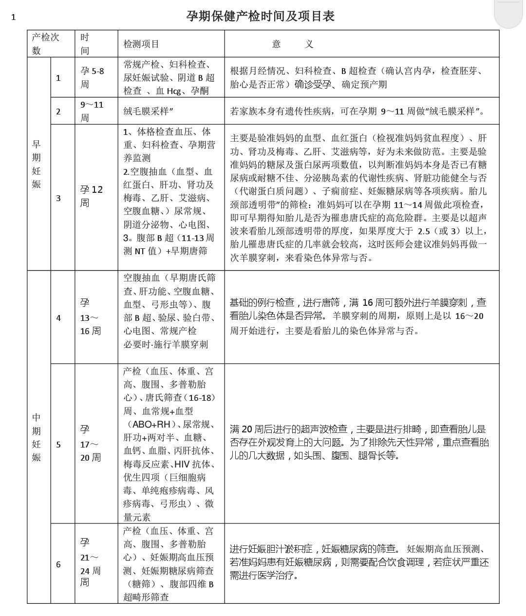附:整个孕期详细产检表。