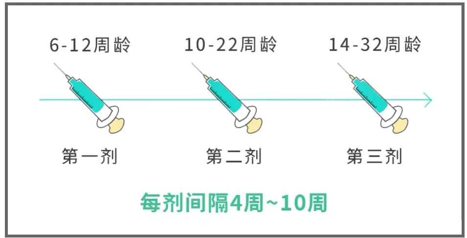 需要注意的是:五价轮状病毒疫苗接种有时间限制,需要尽量在6周龄开始,间隔4-10周,第三剂需要在满32周之前完成。