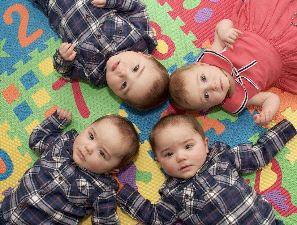 28岁的塞莉娜和35岁的丈夫通过试管婴儿的方法有了他们的大女儿,之后她们又冷冻了两个卵子,希望有机会给女儿生个弟弟或妹妹。但就是这两个卵子为他们带来了四胞胎,其中一个卵子分裂成三个男婴,另外一个卵子变成了最小的妹妹。