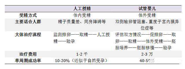人工授精(AI):是指采用非性交的方式将精子递送到女性生殖道中以达到使女子受孕目的的一种辅助生殖技术。同样是助孕,人工授精和试管婴儿成功机率到底有多大呢?我们先来看一看下面这张表。