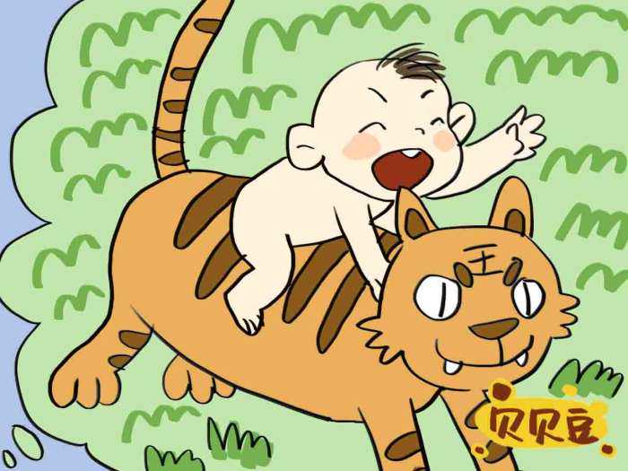 与龙一样,虎在古代就是形容男子仪表的一种喻体,比如“虎虎生威”、“虎目圆睁”、“虎头虎脑”等等。虎做为丛林之王,天生具有一种王者霸气,是与龙争权夺位的一种猛兽,从龙争虎斗、虎啸龙吟就可看出来,准妈妈在孕期梦到戏耍老虎或者老虎从自己身旁经过,通常在睡梦中会受到惊吓,但在破解梦境时,得知是生男孩的预意又会暗地里高兴,在很多准妈妈看来,生一个虎虎生威的男孩,正是她们求之不得的。