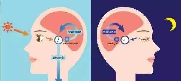 人体褪黑素的分泌受光的调控。它在夜间黑暗环境下分泌量是白天的5-10倍,有助于我们进入睡眠状态,当受到光照时,它的分泌量就会减少,有助于我们觉醒。