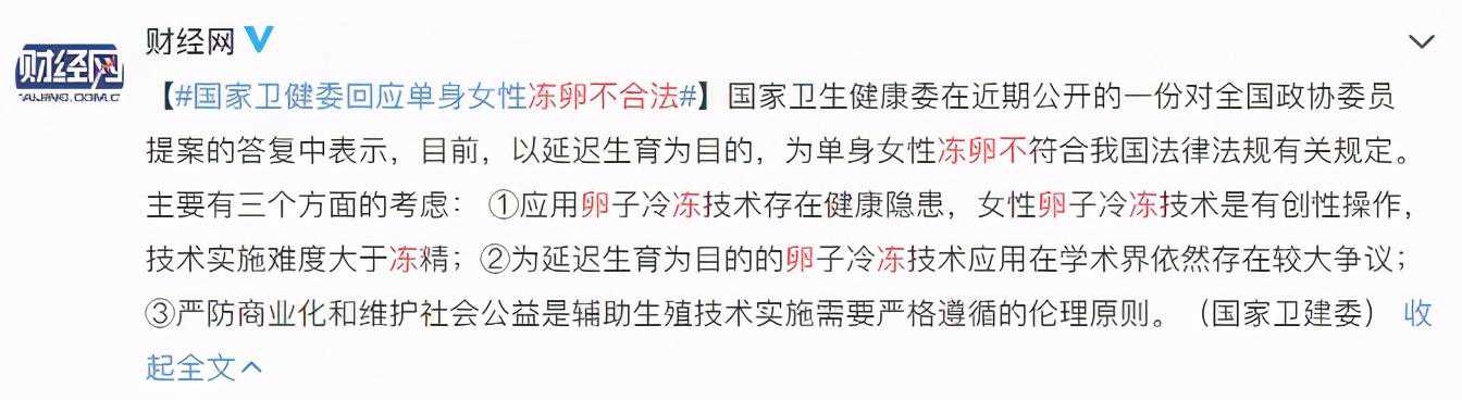 对于近些年来讨论得红红火火的“单身女性冻卵”这件事,前些事卫健委给出了明确的回复:单身冻卵不合法。