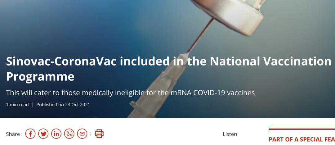 科兴才纳入国家疫苗接种系统